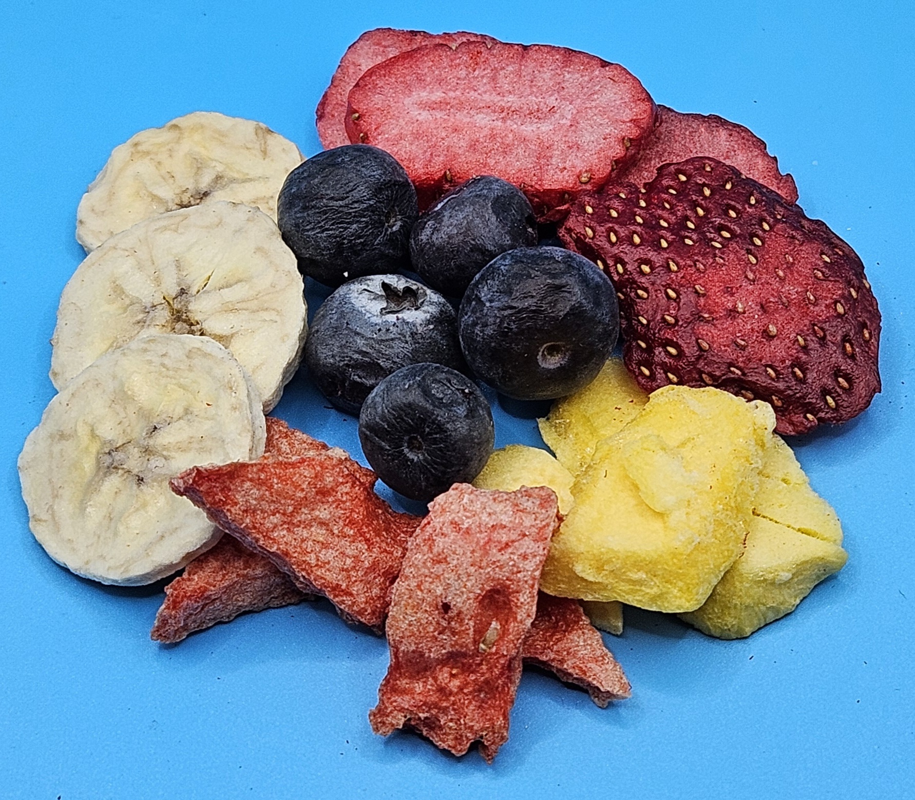 All natural fruit, no sugar added (unless specifcially indicated). Our goal is to keep the fruit tasty and natural. We also add a little Tajin to spice it up. These are great healthy snacks for everyone.